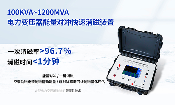 该创新成果已在120万kVA、1100kV及以下各种结构、容量的特高压变压器上应用验证,均能在1分钟内消磁。