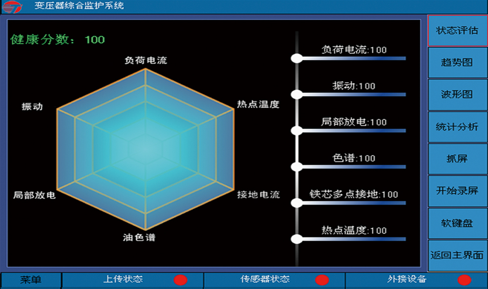 6、内置变压器绝缘缺陷诊断系统,实时、快速给出变压器健康状态,将健康状态进行量化,形成健康指数直观展示。