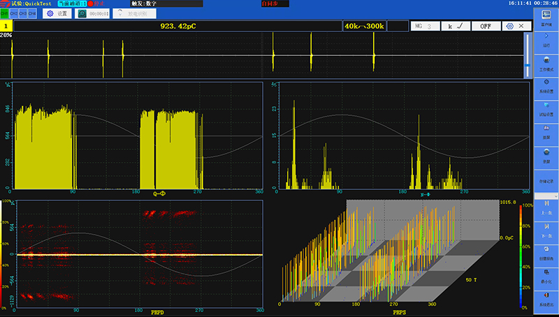 (7)具有幅值检测、相位图谱检测、脉冲图谱检测、脉冲时频分离图谱、波形图谱检测、PRPD图谱以及PRPS图谱功能。