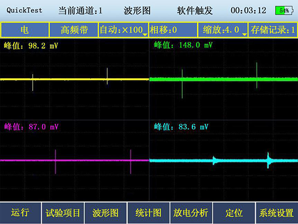 2、具有四通道同步实时脉冲图谱,同时对三相设备进行关联分析;